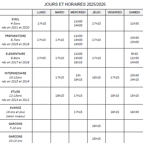 Deux cours sont réservés pour les garçons et répartis sur deux niveaux 7/9ans et 10/12ans.